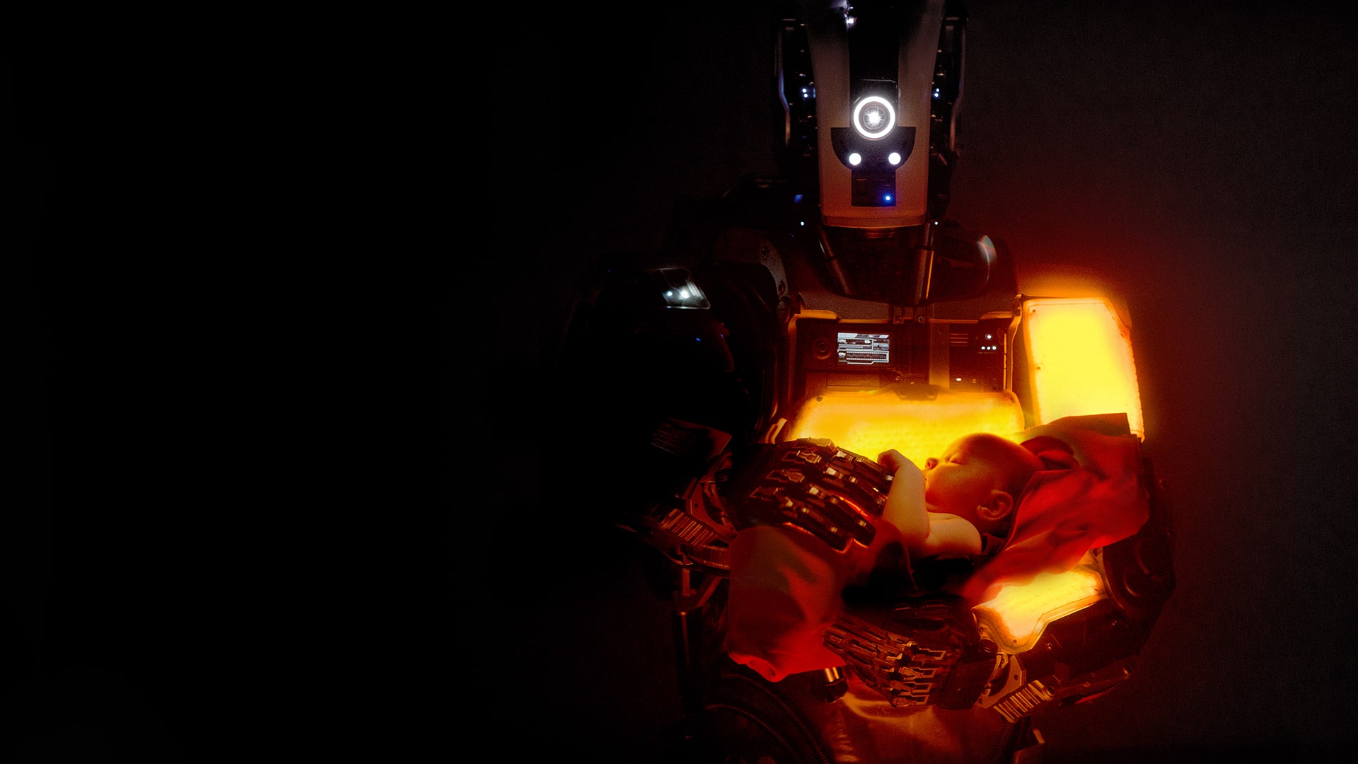 La majorité du scénario se déroule dans le bunker « UNU – HWK », abri créé par l’homme pour assurer le repeuplement de l’espèce humaine en cas d’extinction. Au début du film, nous sommes plongés à l’intérieur de ce bunker, visiblement secoué par ce qui ressemble à des explosions à la surface de la Terre. Dans une salle, le robot qui incarnera la mère, est assemblé par des bras mécanisés. C’est maintenant que débute la mission de Mère. Permettre à l’espèce humaine de repeupler la planète. À l’aide d’une machine plus que sophistiquée, Mère enclenche le développement d’un embryon humain. Grâce à l’appareil, il suffit de 24H pour transformer un embryon en bébé. Mère apprend son rôle pas à pas et évalue sa capacité à élever un enfant.Bien qu’aucune temporalité ne soit apportée dans le film, nous sommes quelque part, dans un futur probablement proche.